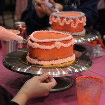 A Sweethearts' decorated space and individually set tables with your pre-assembled cake ready to decorate!